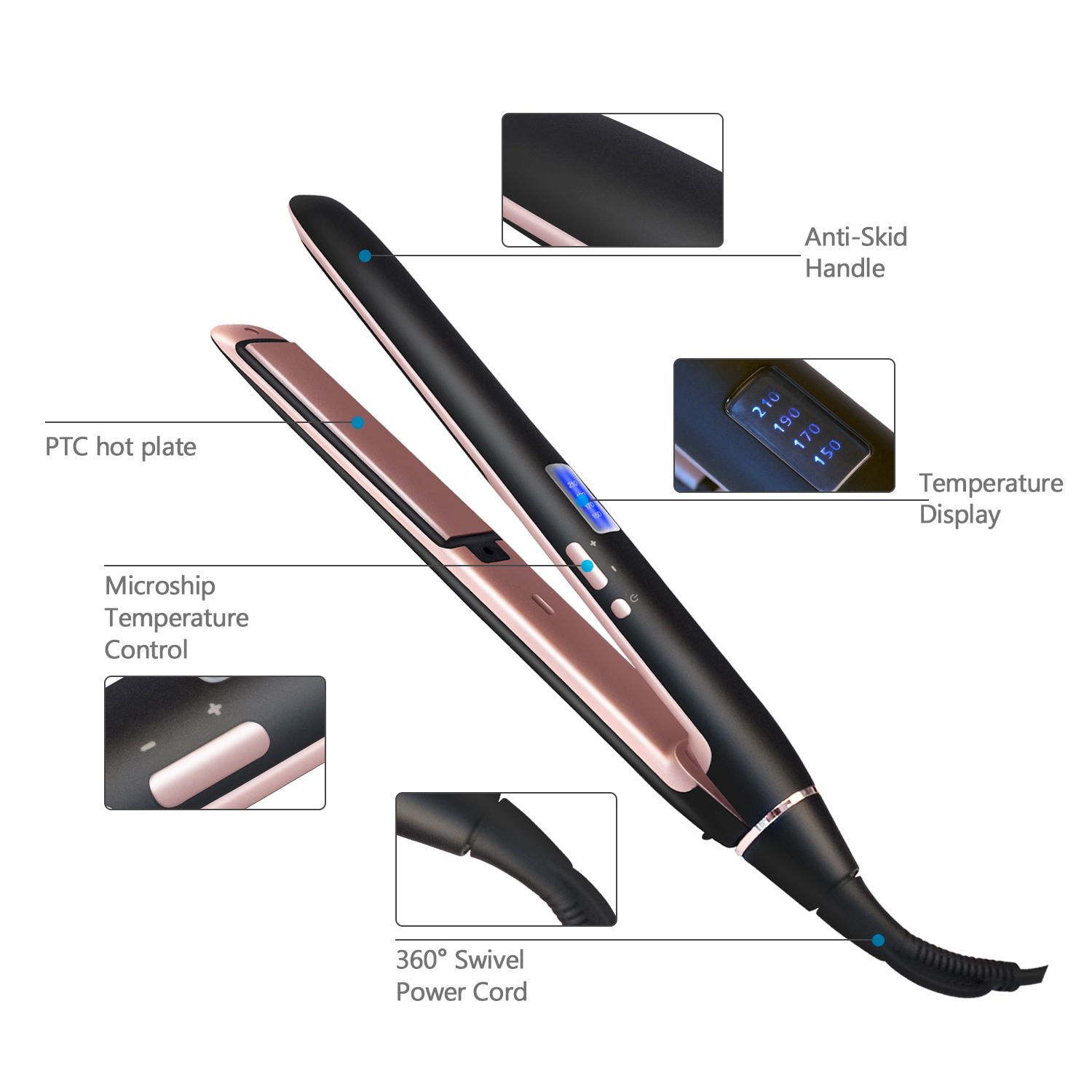 Lock Function: straight hair tail with lock, temperature lock function, double-click the switch twice to lock the temperature.