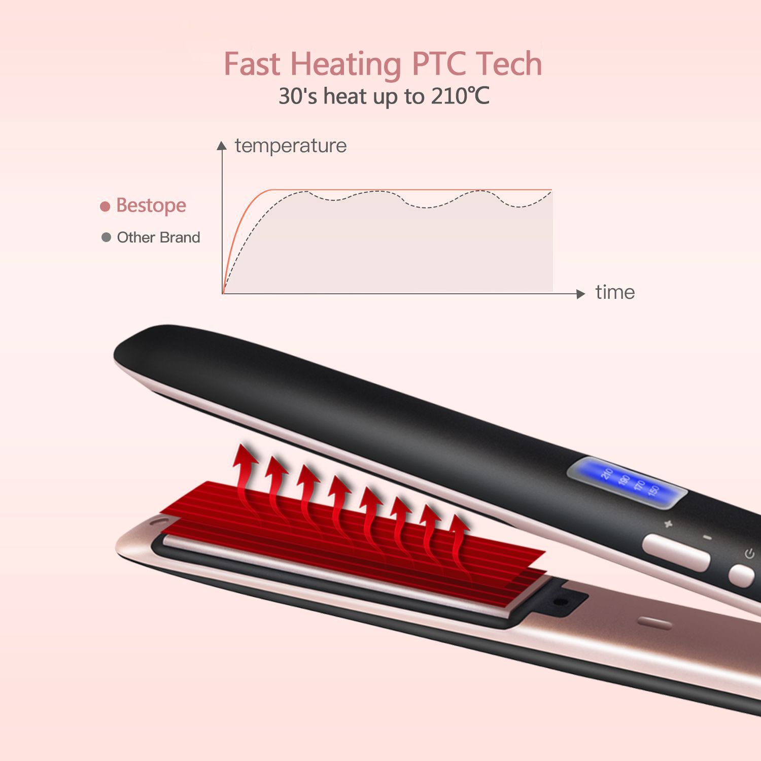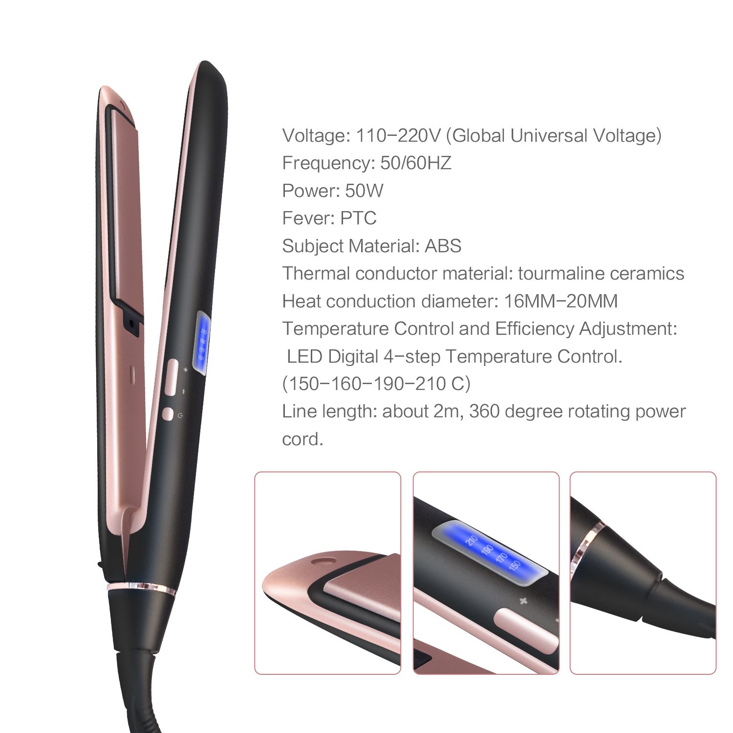 Temperature display: advanced blue screen display, temperature 100-230 degrees arbitrary regulation, 1 hour auto-off function,